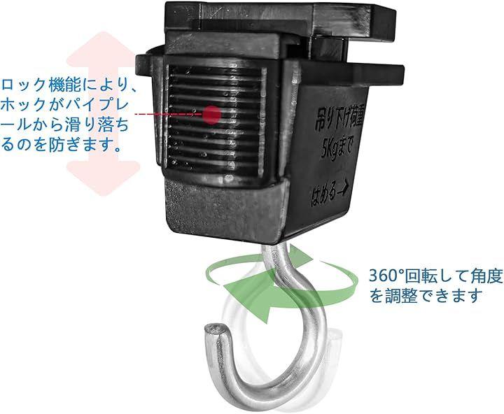 ロック機能により、ホックがパイプレールから滑り落ちるのを防ぎます.