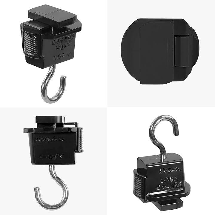 サイズ:高さ30mmx幅25mmx全長47mm 重量: 13g/1個 耐荷重: 5kgまで 材質:プラスチック+ステンレス鋼 適用:パイプレールにアクセサリーをぶら下げたり、宙に浮いた電線を整理したりするために使用します。