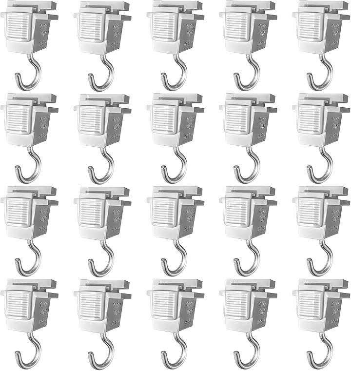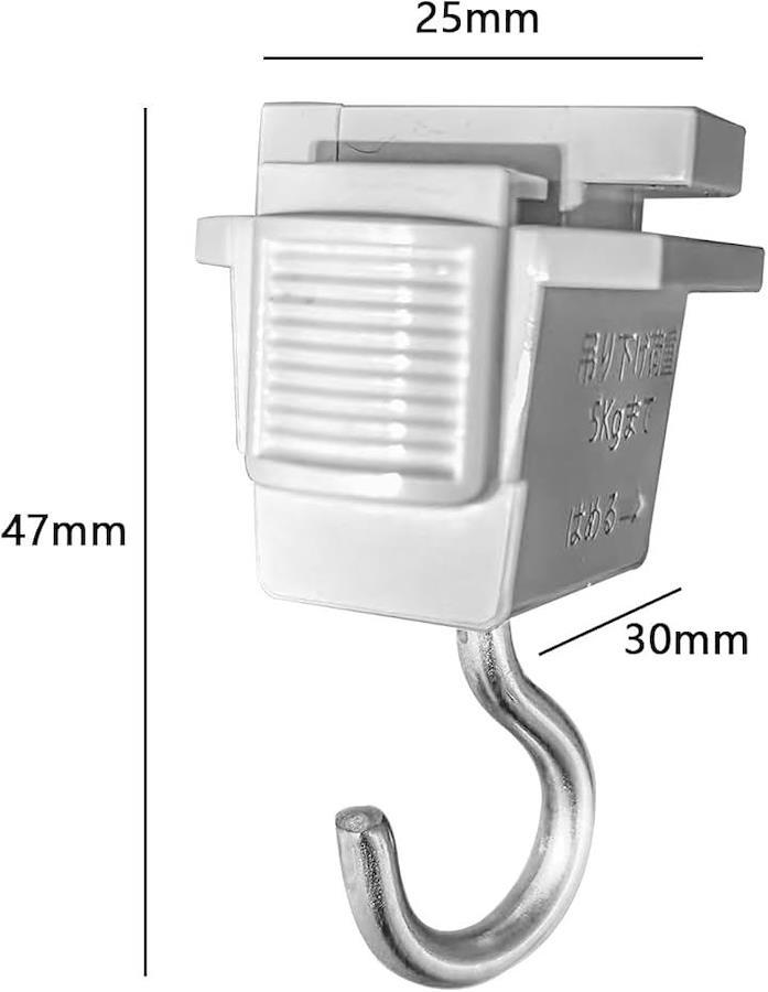 サイズ:高さ30mmx幅25mmx全長47mm 重量: 13g/1個 耐荷重: 5kgまで 材質:プラスチック+ステンレス鋼 適用:パイプレールにアクセサリーをぶら下げたり、宙に浮いた電線を整理したりするために使用します。