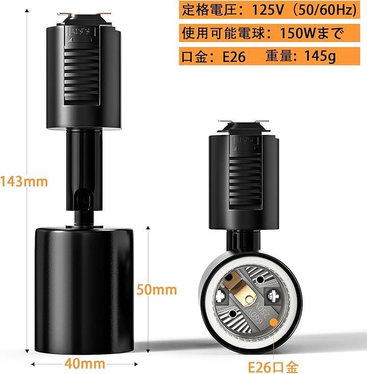 1、本体色:黒い,適合負荷:125V 6A 口金:E26,サイズ:約W 40mmxH143mmxD50mm 重量:約143g/個.