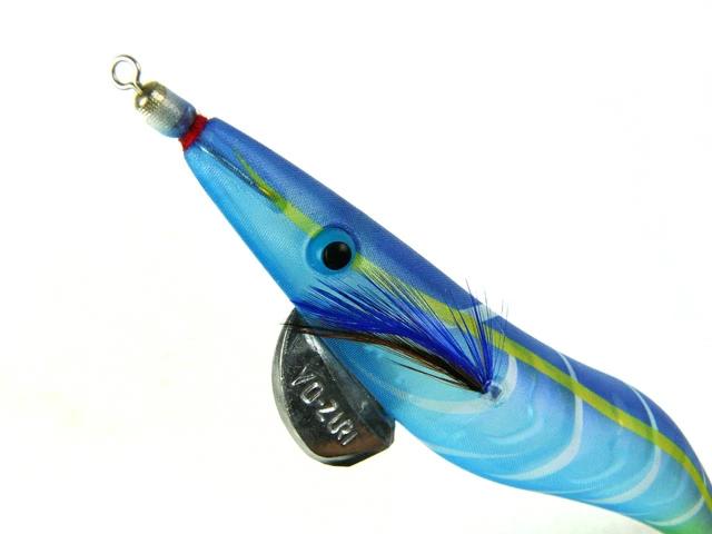 イカが感知しやすい光波長(488nm)のブルー夜光アイ採用。「3Dプリズム×ハーフゴーストR布」が生み出すボディの光波長にブルー夜光の波長が加わり、ダブル効果でイカを寄せます。