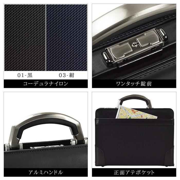 【 商品説明 】◆ 耐摩擦や耐引裂強度に優れたコーデュラナイロンを鞄本体に使ったハイグレードモデルのミニダレスバッグ登場!◆ の字に大きく開く大開きダレスだから中身が見やすく、荷物がスムーズに取り出しやすい!◆ 充実したポケット、耐久性があり高級感を感じるアルミハンドルなど、こだわりを随所に感じます。◆ 鞄の開閉が片手ででき、セキュリティーにも配慮した鍵付きワンタッチ錠前!◆ ビジネスにおける使いやすさや機能性を追求し、アクティブに使うビジネスマンにとって頼もしい味方となる逸品です。◆ 「鞄の産地」兵庫県豊岡市の鞄職人による丁寧な作り、熟練された職人技が光る逸品です。