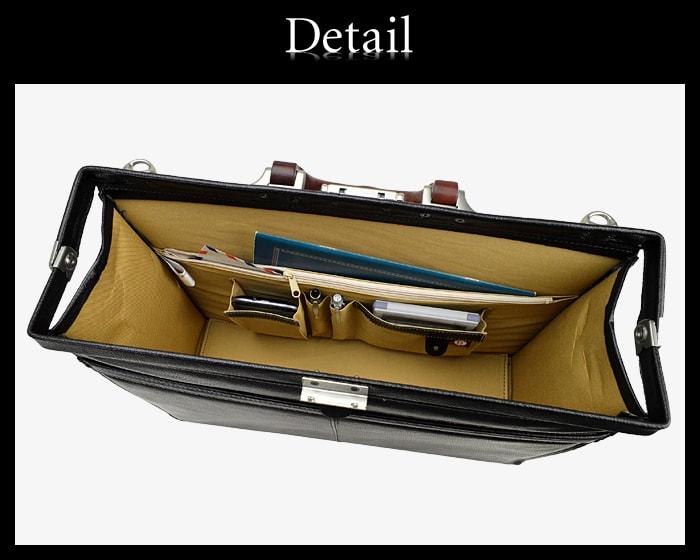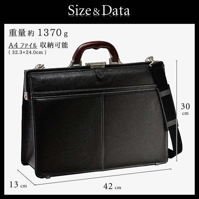 【 商品説明 】◆上質な牛革と天然木手ハンドルを使ったビジネスにふさわしい重厚感ある牛革ダレスシリーズ!◆温もりある天然木ハンドル。優しい手ざわりとしっかりしたハンドリングが疲れを軽減します。◆片手でワンプッシュ操作。一発オープン式『ワンタッチ錠前』でストレスを軽減。◆ドクターバッグの貫禄と扱いやすさを継承する、中が見やすく取り出しやすい口枠式ダレス。◆A4ファイル(32.3×24.0[cm])が収納可能、書類や資料をたっぷり収納できます。◆中が見やすい明るいベージュの内装色。ポケットやペン差しなど装備も充実し小物が探しやすい。◆肩アテ付きショルダーベルト付属。両手が空くのでスマホ操作等が楽にできます。◆色は、堂々たる存在感を漂わせる「黒」と、洗練された大人の雰囲気を醸し出す「チョコ」の2色!◆鞄の産地「兵庫県豊岡」の鞄職人による丁寧な作り、熟練された職人技が光る逸品です。◆父の日、バレンタイン、クリスマス、誕生日、お祝い、記念日などのプレゼントにも最適です!