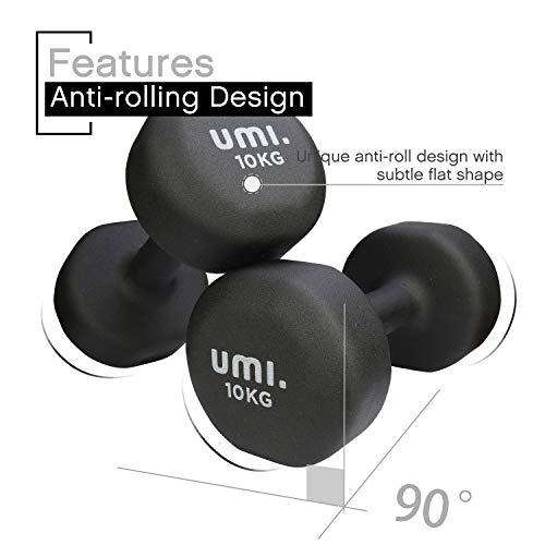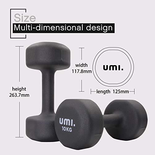 ダンベル重量:10kg×2【素材】鋳鉄、ネオプレン【サイズ】長さ15.38cm×幅6.1cm×高さ5.76cm、ハンドル直径28mm【転がりにくく設計された形状】重さは色によって異なり、1kgから10kgまである。ウェイトセレクション提案チャートを利用して、適切な重さのダンベルを選択可能握りやすく、滑りにくいグリップ。筋トレを楽しい気分にしてくれる、きれいなカラーバリエーション