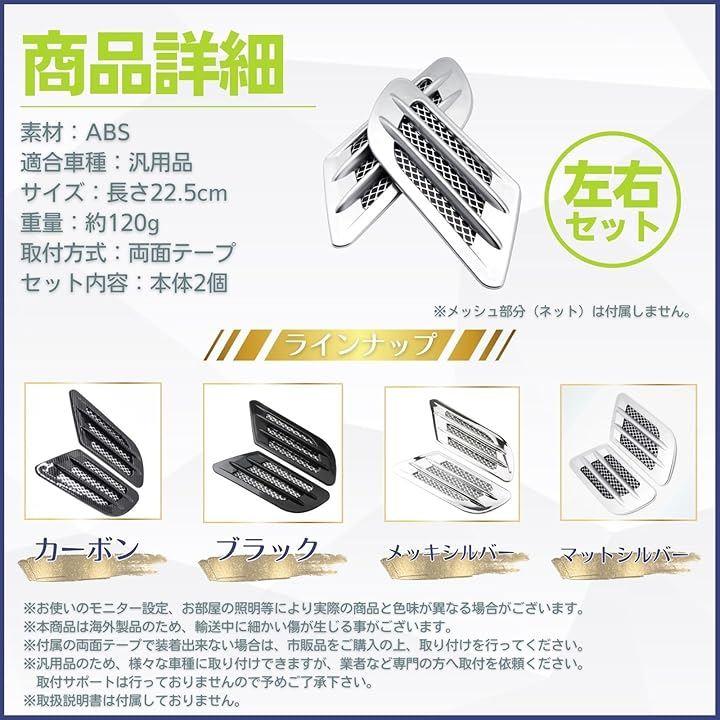 「多彩なカラーバリエーション」カーボン調、ブラック、メッキ、シルバーの4色から選べるので、あなたの車にぴったりの色を見つけることができます。