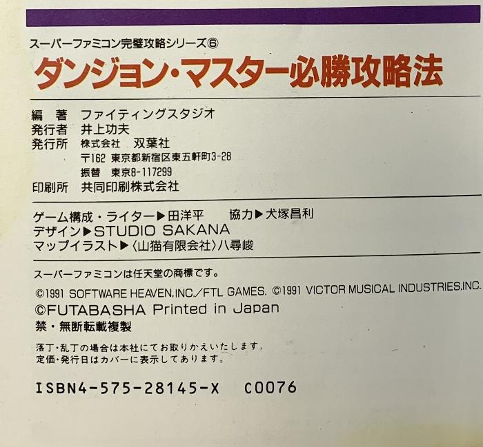 Dungeon Master Hissho Strategy Guide (Super Famicom Perfect Strategy Series 6) Futabasha Fighting Studio