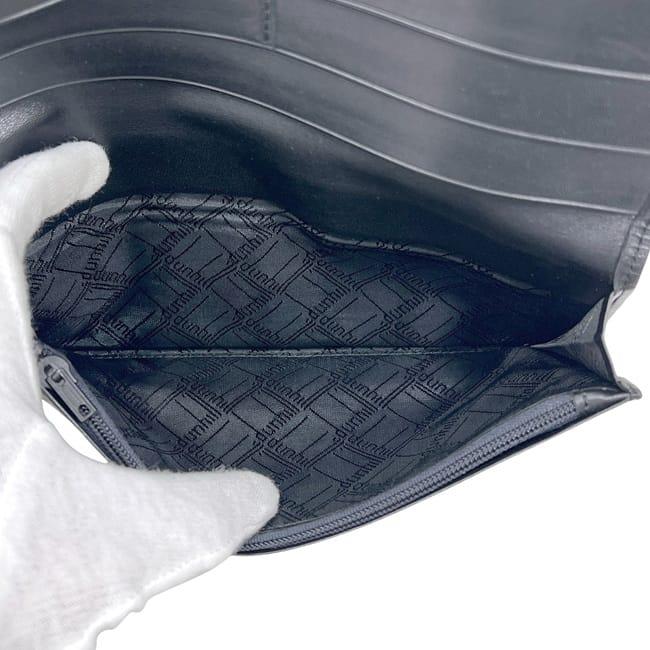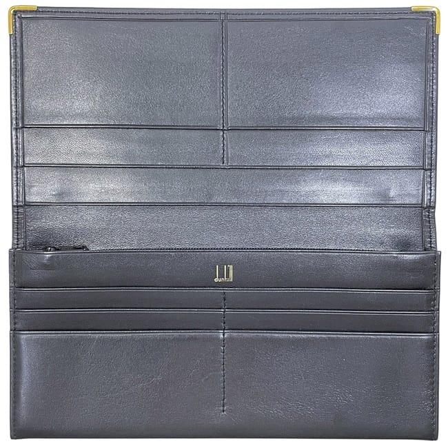 ☆---- 商品について ----☆ダンヒル 二つ折り 長財布 ec-24420 ブラック サッチェル 財布 美品 レザー 中古 dunhill ヴィンテージ ロゴ プレート シンプル 本革 薄型 黒 メンズ 男性 定番 人気 カーフレザー ロゴ金具 ゴールド金具 小銭入れ有 スマート ブランド 本物 鑑定済み