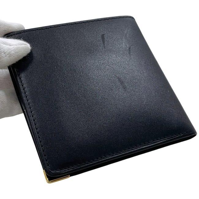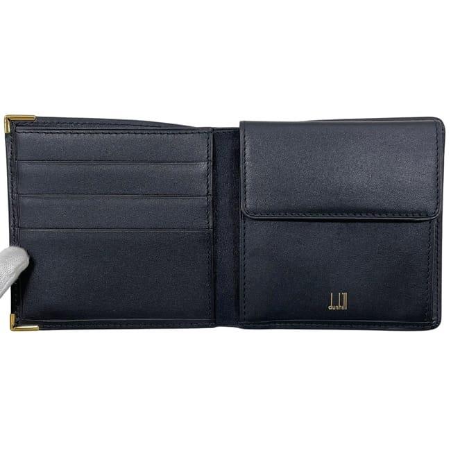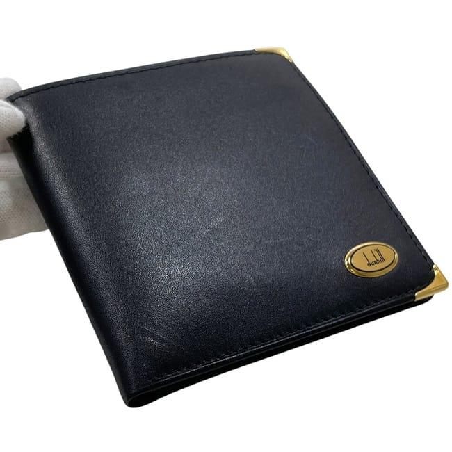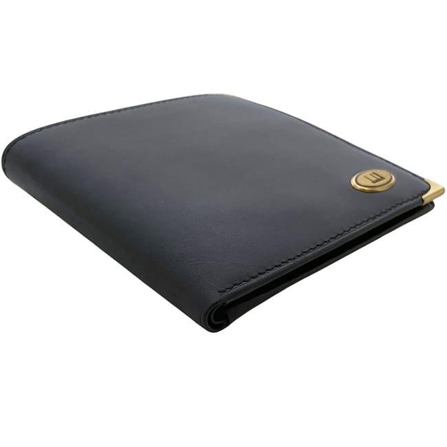 ☆---- 商品について ----☆ダンヒル 二つ折り 財布 ec-24424 ブラック オックスフォード 美品 レザー 中古 dunhill ロゴ プレート 金具 折り財布 本革 メンズ 黒 男性 定番 人気 ゴールド金具 ヴィンテージ 革財布 シンプル 小銭入れ有 カーフレザー ブランド 本物 鑑定済み