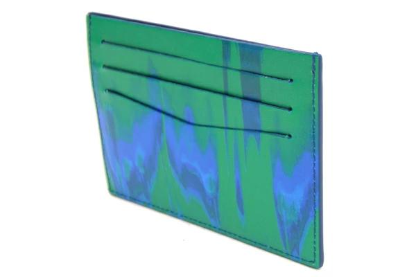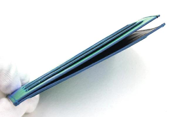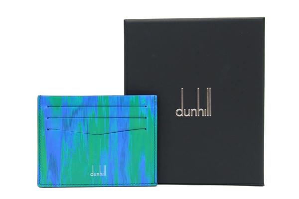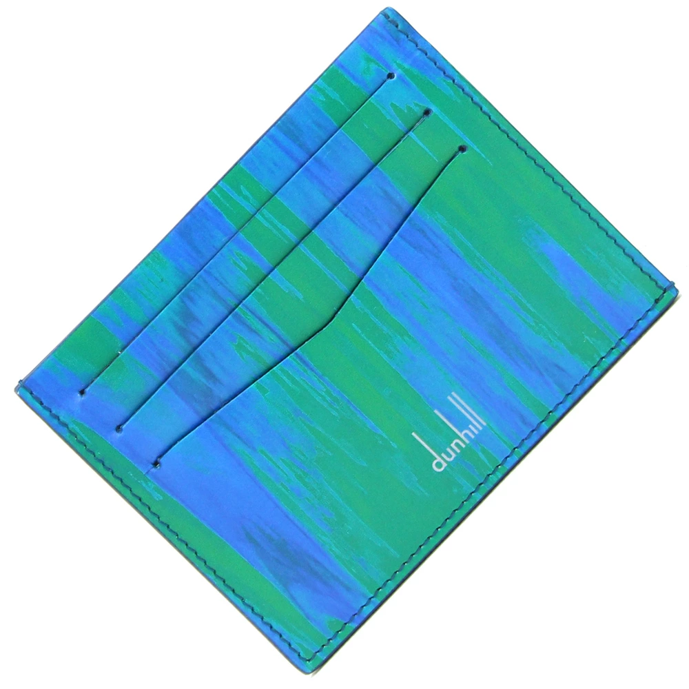 Dunhill card case in blue and green leather. Brand new and unused. Pass case in blue and green. Men's. Dunhill