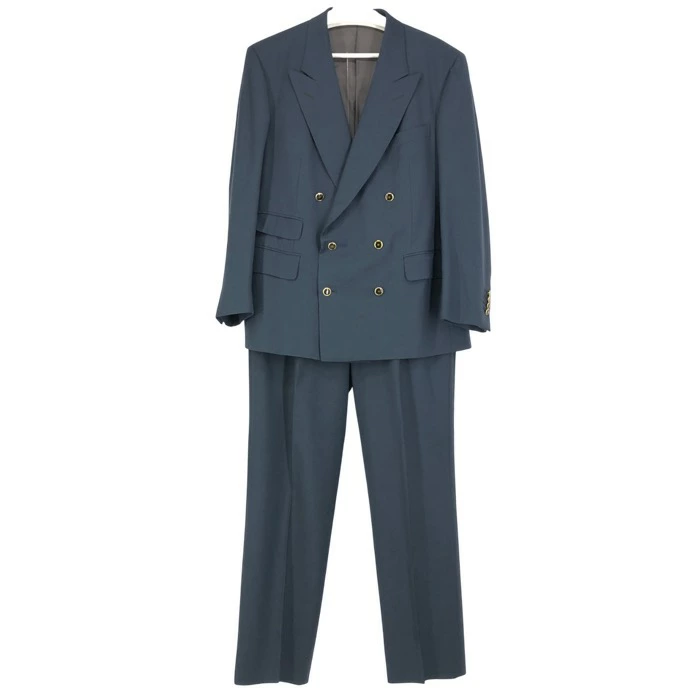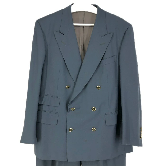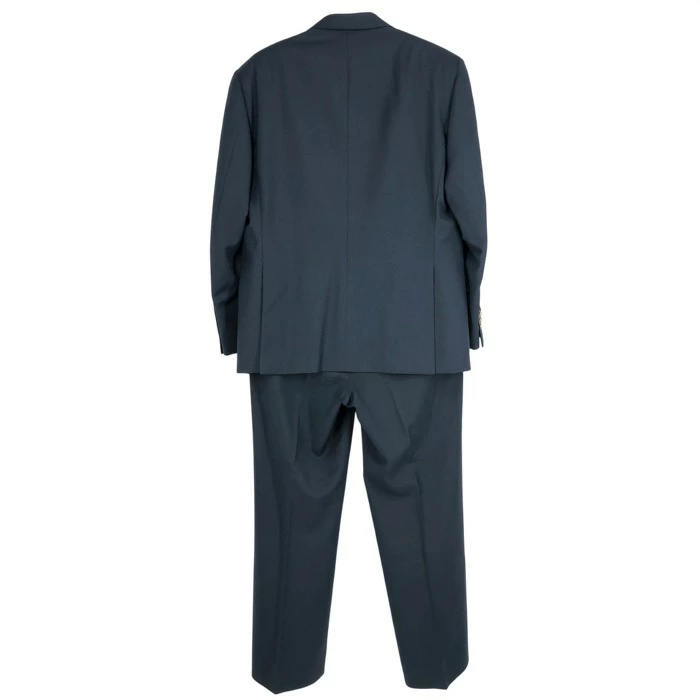 | サイズ | 着丈:約74cm 肩幅:約49cm 身幅:約55cm ウエスト:約42.5cm 股上:約30cm 股下:約77cm ワタリ幅:約31.5cm 裾幅:約23cm 袖丈:約62cm パンツ総丈:105cm ジャケット表記サイズ:52(XXL相当) パンツサイズ表記:50(XL相当) ※ジャケットとパンツでサイズが異なります。 |