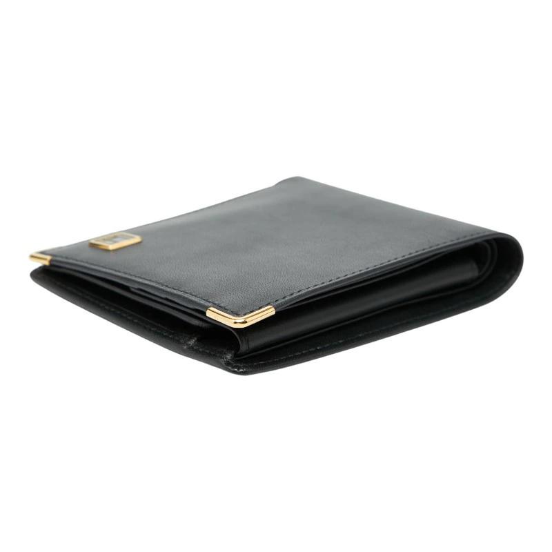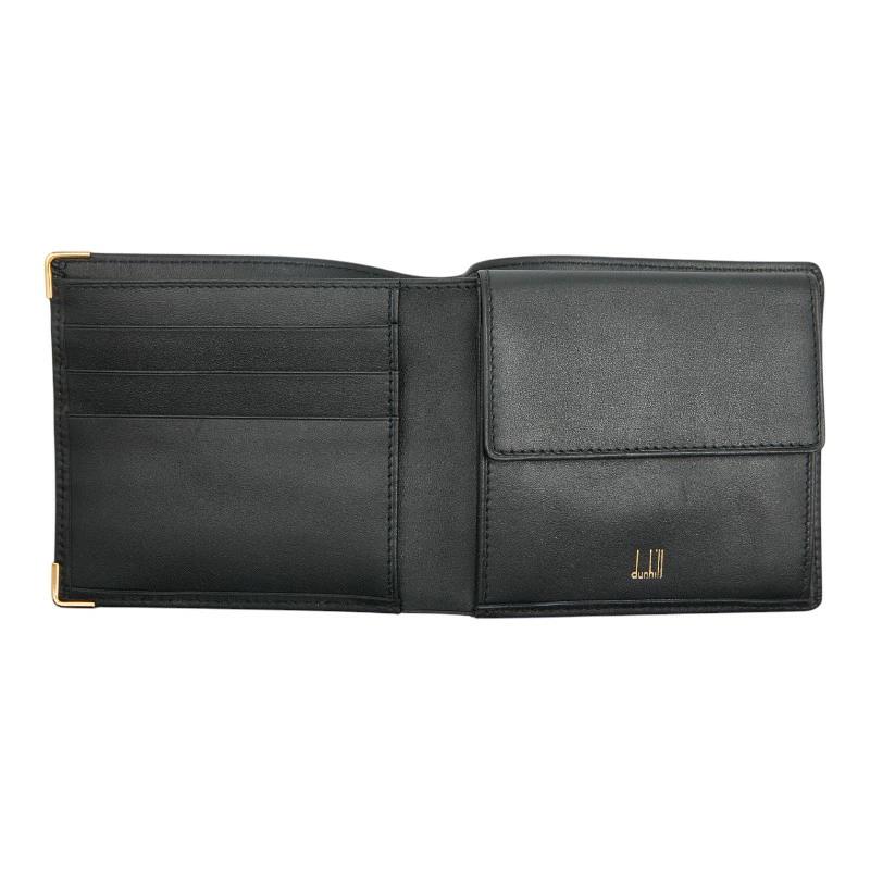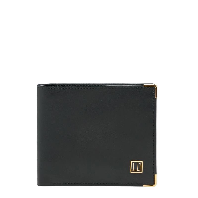 Dunhill logo bifold wallet in black leather, women's. [Pre-owned]
