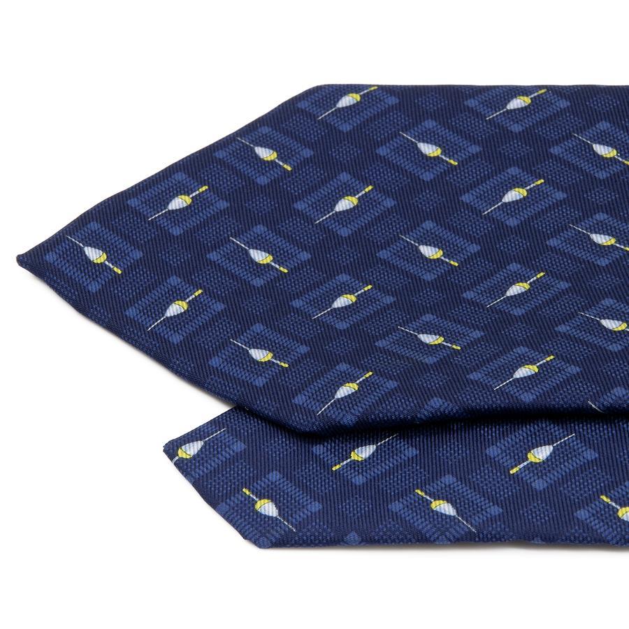 こちらは釣り好きの心をくすぐる、ユニークなウキのデザインが魅力の、ダンヒルのネクタイでございます。