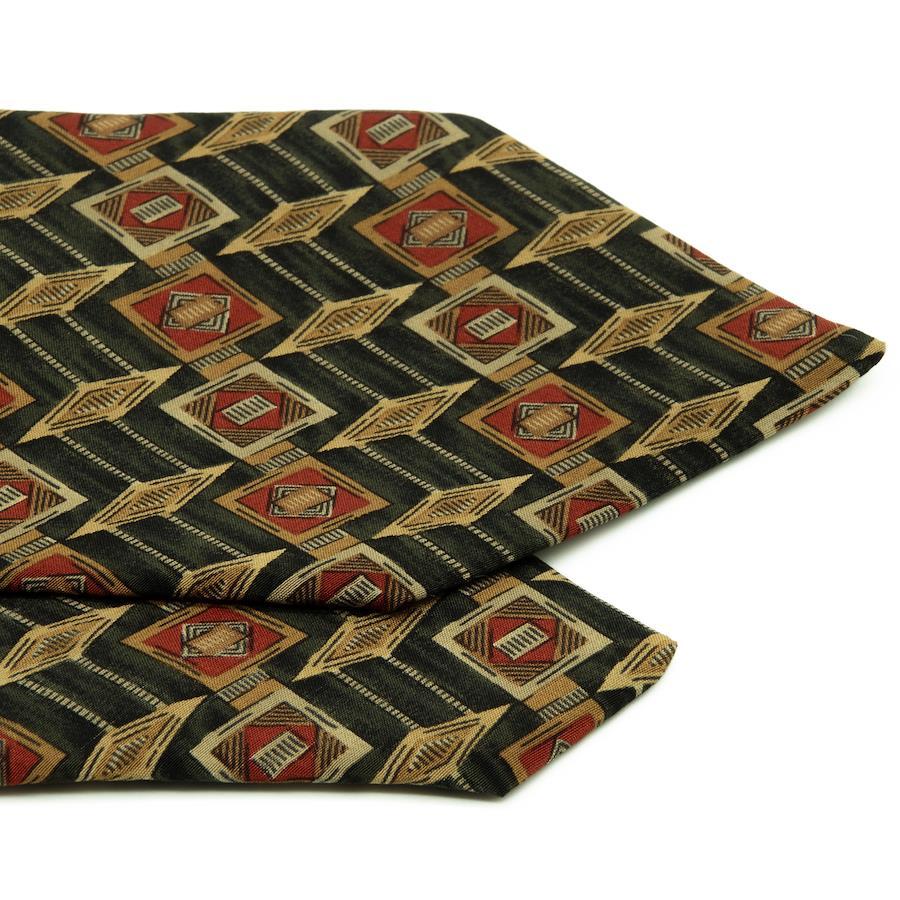 深みのあるグリーンを基調とし、レッドやブラウンで構成されたスクエアやひし形の幾何学模様が、Vゾーンに絶妙なアクセントと大人の渋みを与えてくれます。