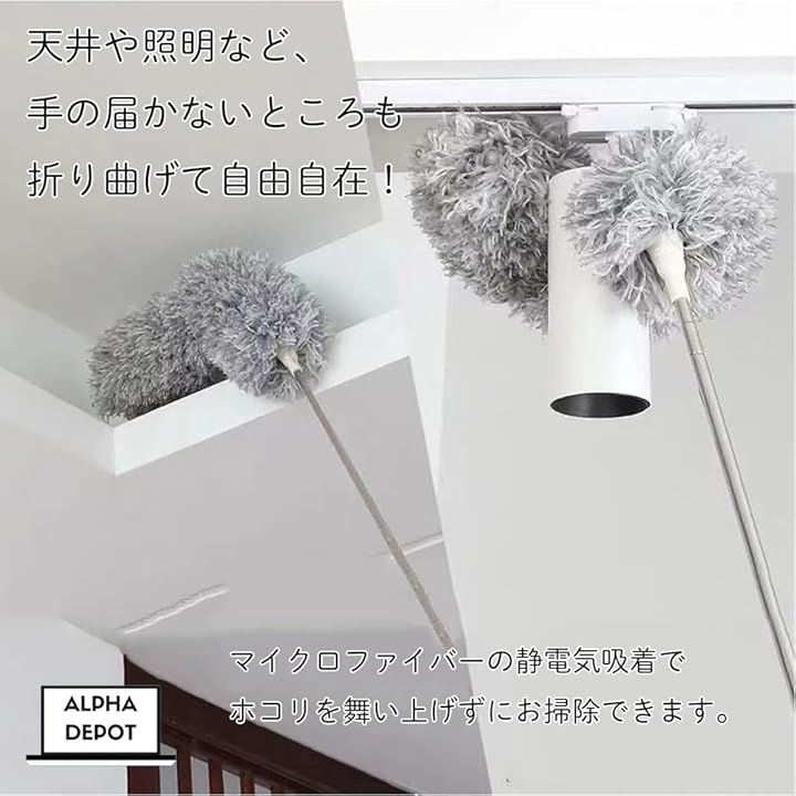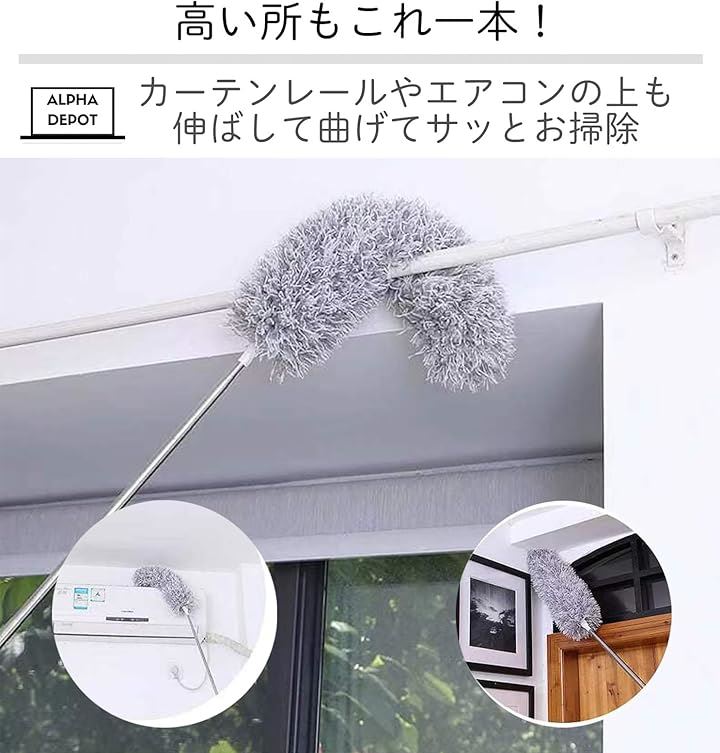 「高い所これ一本。」カーテンレールやエアコンの上も伸ばして曲げてサッとお掃除。