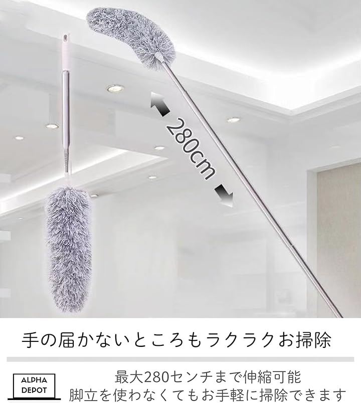 「手の届かないところもラクラクお掃除」最大280センチまで伸縮可能。