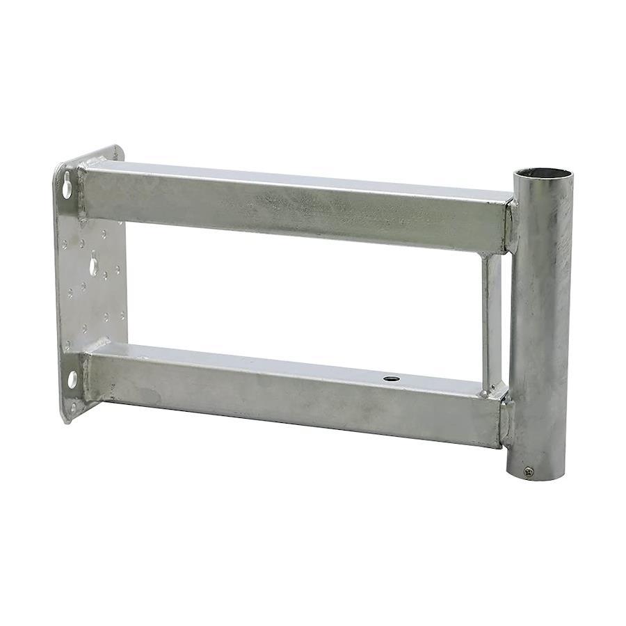 50形以下のBS・CSアンテナや、UHF・FMアンテナを軒先に設置する場合に使用する壁面取付金具です。軒先に合わせて、325~510mmで伸縮自在です。アーム抜け防止ボタン付。適合マスト径:φ25~32mm。耐食性に優れた、塩害対策用の溶融亜鉛メッキ(HDZ35)仕様。