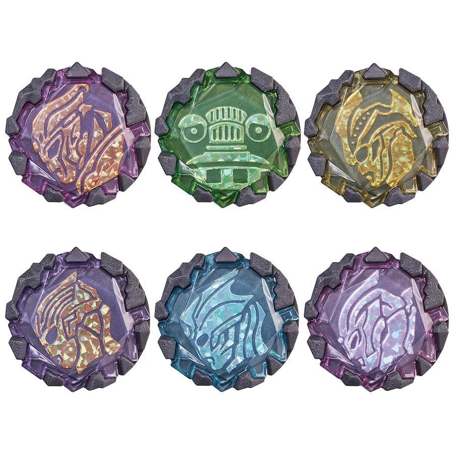 <「電光変身 DXブレーザーブレス」(別売り)との連動遊び>1:ゼロストーン(ビヨンド)変身待機音がウルトラゼロアイの効果音に変化し、ゼロのセリフを聞くことができます。ボタンを押すと、ウルトラマンゼロビヨンドへの変身音と「ニュージェネレーションカプセル!α!β!」「ウルトラマンゼロビヨンド!」という天の声とゼロ専用のアニメーションが流れます。2:ストレイジストーンストーンをセットすると、ウルトラマンゼットとハルキのセリフを聞くことができます。ボタンを押すとウルトラマンゼットの変身音とゼット専用のアニメーションが流れます。その後のボタン操作で、特空機4体(セブンガー、ウインダム、キングジョー ストレイジカスタム、ウルトロイドゼロ)の鳴き声が鳴ります。3:ギンガビクトリーストーン変身待機音がギンガスパークの効果音に変化し、ヒカルとショウの変身セリフを聞くことができます。ボタンを押すとウルトラマンギンガビクトリーへの変身音と共にギンガ専用のアニメーションが発動します。4:オーブストーン(スペシウムゼペリオン)変身待機音がオーブリングの効果音に変化し、ボタンを押すとウルトラマンオーブ スペシウムゼペリオンへの変身音が発動します。5:トリガーストーン(スカイタイプ)変身待機音がガッツスパークレンスの効果音に変化し、マナカケンゴのセリフを聞くことができます。ボタンを押すとウルトラマントリガー スカイタイプへの変身音と共にトリガー専用のアニメーションが発動します。6:レグロスストーン変身後のボタン操作で、ウルトラマンレグロスの掛け声と、幻獣覇王拳の攻撃音が鳴ります。[セット内容]・ゼロストーン(ビヨンド)…1・ストレイジスト―ン…1・ギンガビクトリーストーン…1・オーブストーン(スペシウムゼペリオン)…1・トリガーストーン(スカイタイプ)…1・レグロスストーン…1(本商品に付属のセット内容以外、すべて別売りです。) 『ウルトラマンブレーザー』より、6つのブレーザーストーンがセットになった「無敵のニュージェネレーションセット」が登場! 『ウルトラマンZ』に登場する対怪獣特殊空挺機甲隊「ストレイジ」の特空機4体の鳴き声が鳴るスペシャルなストーン「ストレイジストーン」を含む6枚をラインナップします。 ブレーザーストーン本体は、鉱石のような表面加工を施したパーツにクリアカラーのカバーを重ねて神秘的なイメージを表現。 歴代ウルトラマンや怪獣を象ったレリーフ部分は、キラキラと光り輝く箔押しで装飾されています。 さらに、別売りの「電光変身 DXブレーザーブレス」にセットすると、対応する音声と光のアニメーションが発動! 6種それぞれで全く異なる変身なりきり遊びが楽しめます。 (C)円谷プロ (C)ウルトラマンブレーザー製作委員会・テレビ東京