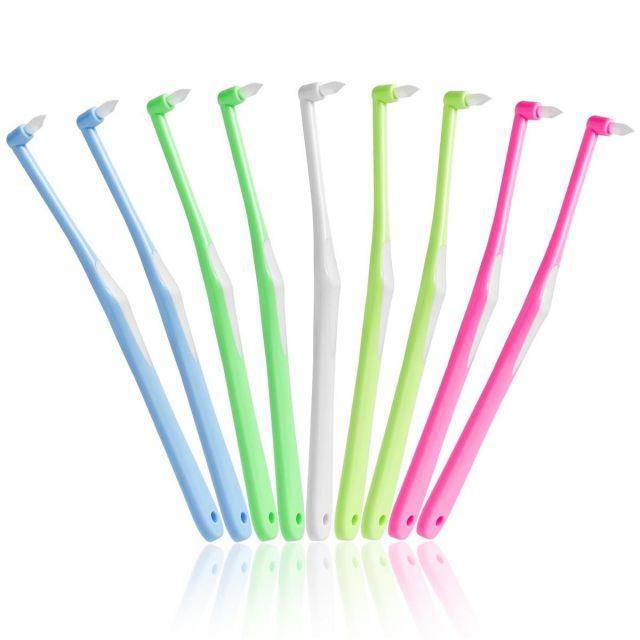 カラー:9本入5色(2本ブルー+2本グリーン+2本イエロー+2本レッド+1本ホワイト)◆商品名:DXTECHPRO9本入5色ワンタフトブラシ超極細いやわらかめ歯科用歯ブラシ部分磨き奥歯用矯正用歯間ブラシ入りやすい歯間清掃