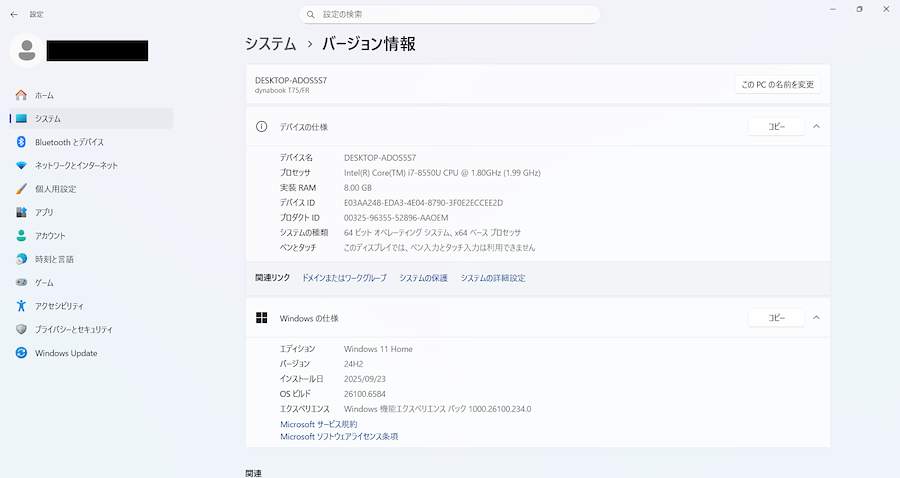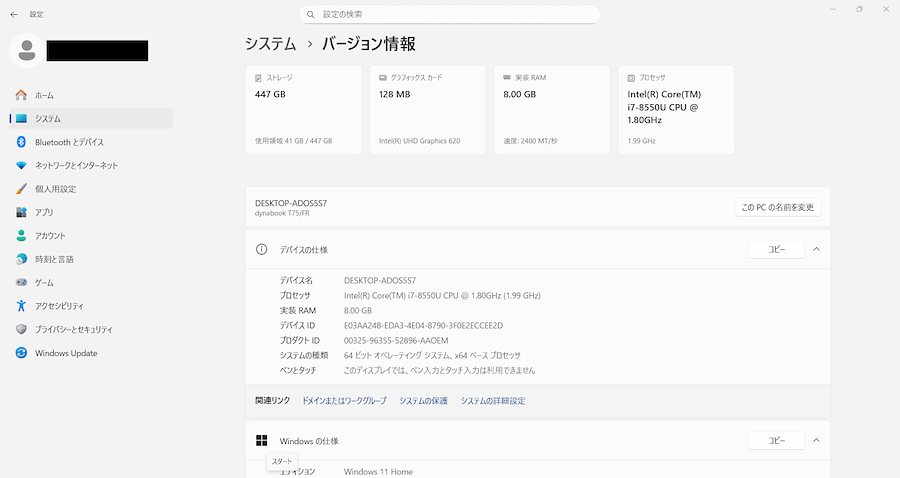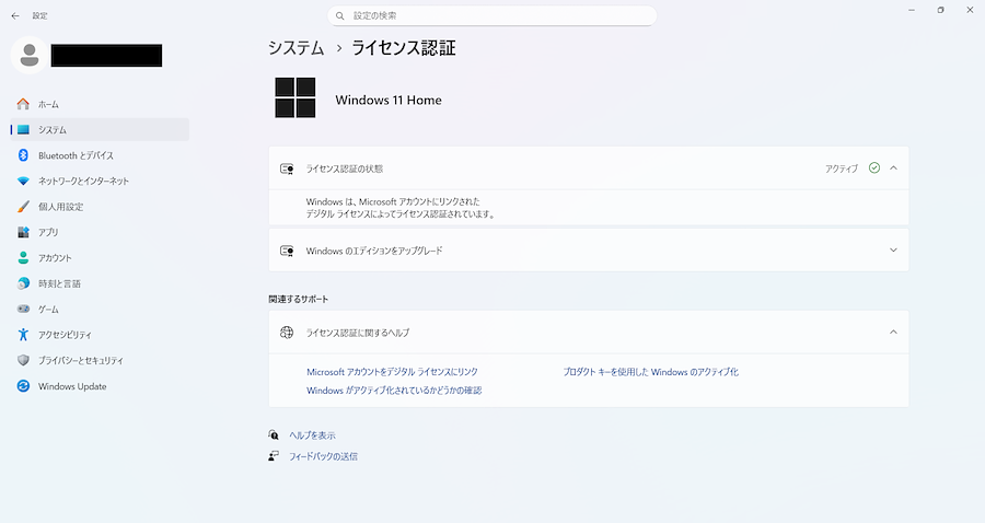 ■ OS:Windows 11 Home(ライセンス認証済み)