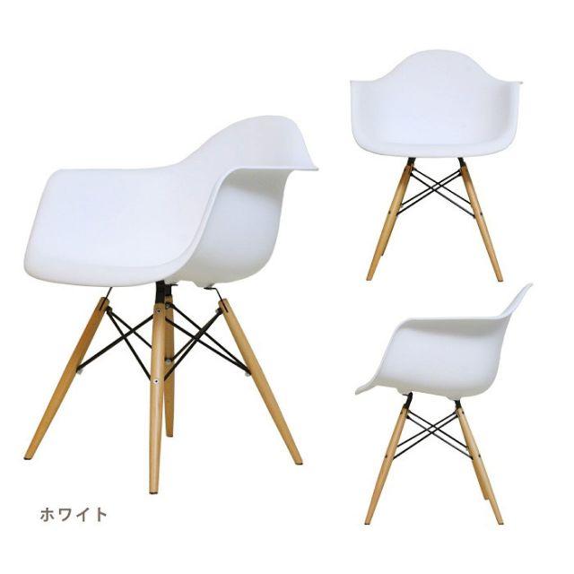 ■ミッドセンチュリーの代名詞、イームズ夫妻の代表作であるシェルチェア。その中でも特に有名な、DAW(ダイニングハイアームチェアウッドベース)と呼ばれるダイニングチェア。■座面はプラスチックを一体成型した座面は、身体に気持ちよくフィット。長時間座っても疲れません。ゆるやかなカーブを描くアームに肘を置くと、きっと安心感と開放感に包まれるはず。■座面の素材は、PP(ポリプロピレン樹脂)製。素材感は「ツルツルピカピカ」ではなく、「とても細かい凹凸のあるマットな質感」です。さらさらとした触り心地で、汚れもさっと拭き取れるので、メンテナンスも簡単です。