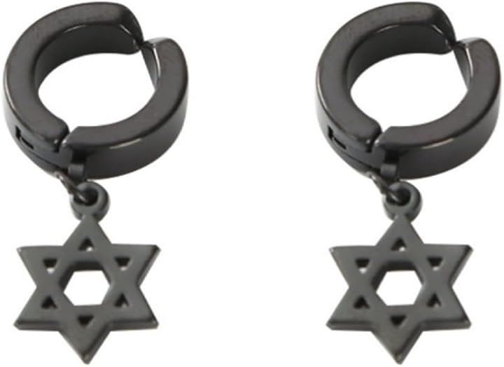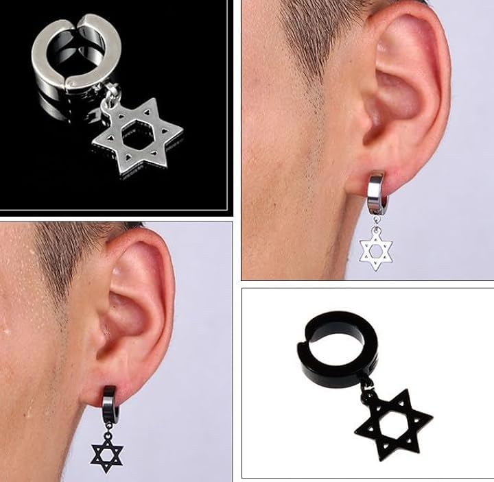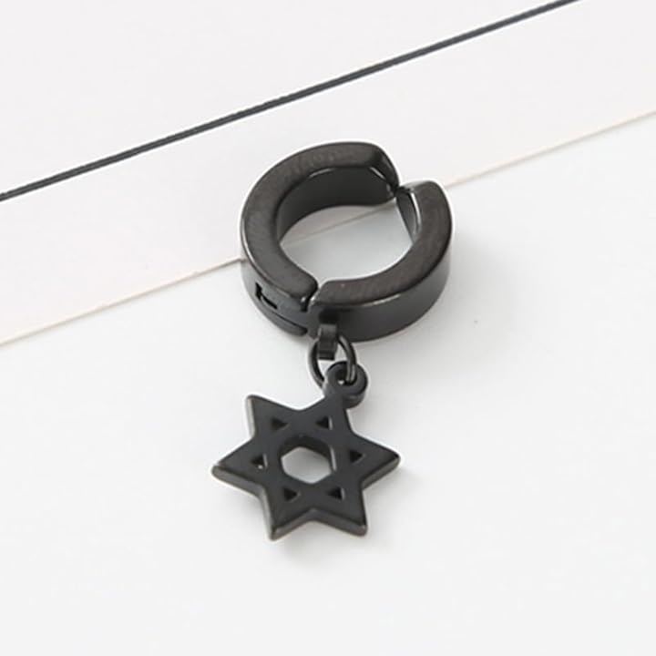Ear cuff, star design, simple, 2 pieces (for both ears), stainless steel, dangling, no piercing required, painless, fake earring.