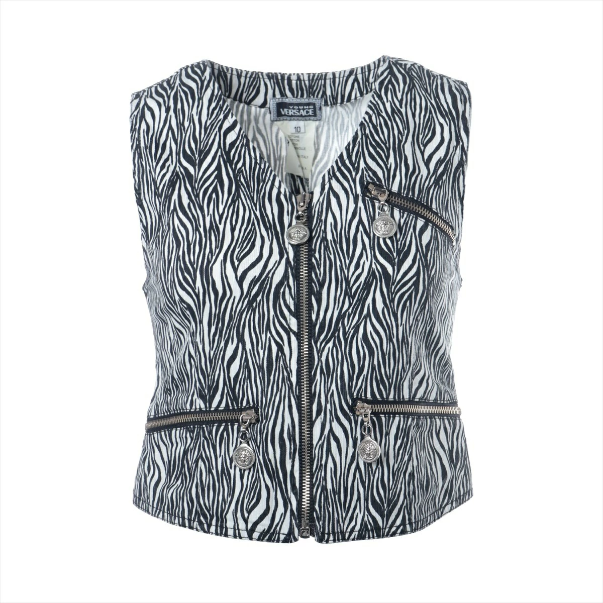 商品名 ヴェルサーチ VERSACE コットン ゼブラ柄 10 ノースリーブ メドゥーサ ベスト ブラック WS16238 【中古】 コンディションランク A コンディション詳細 使用感の少ない状態の良い中古品になります。 |