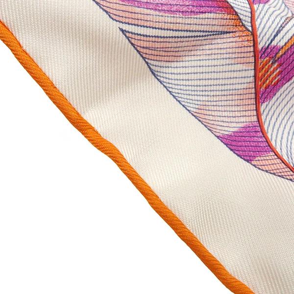 エルメス HERMES カレ90 CARRE カレ スカーフ シルク ホワイト×コーラル×パルム 【Plumes en Fete/プリュム アン フェット】 - レディース定番 人気 美品 【中古】