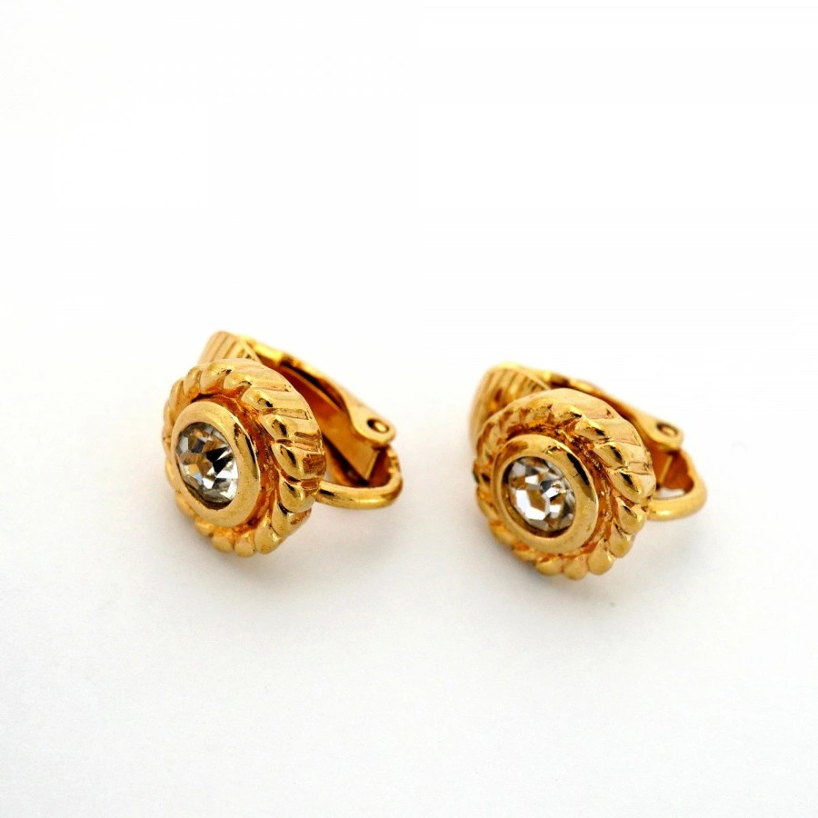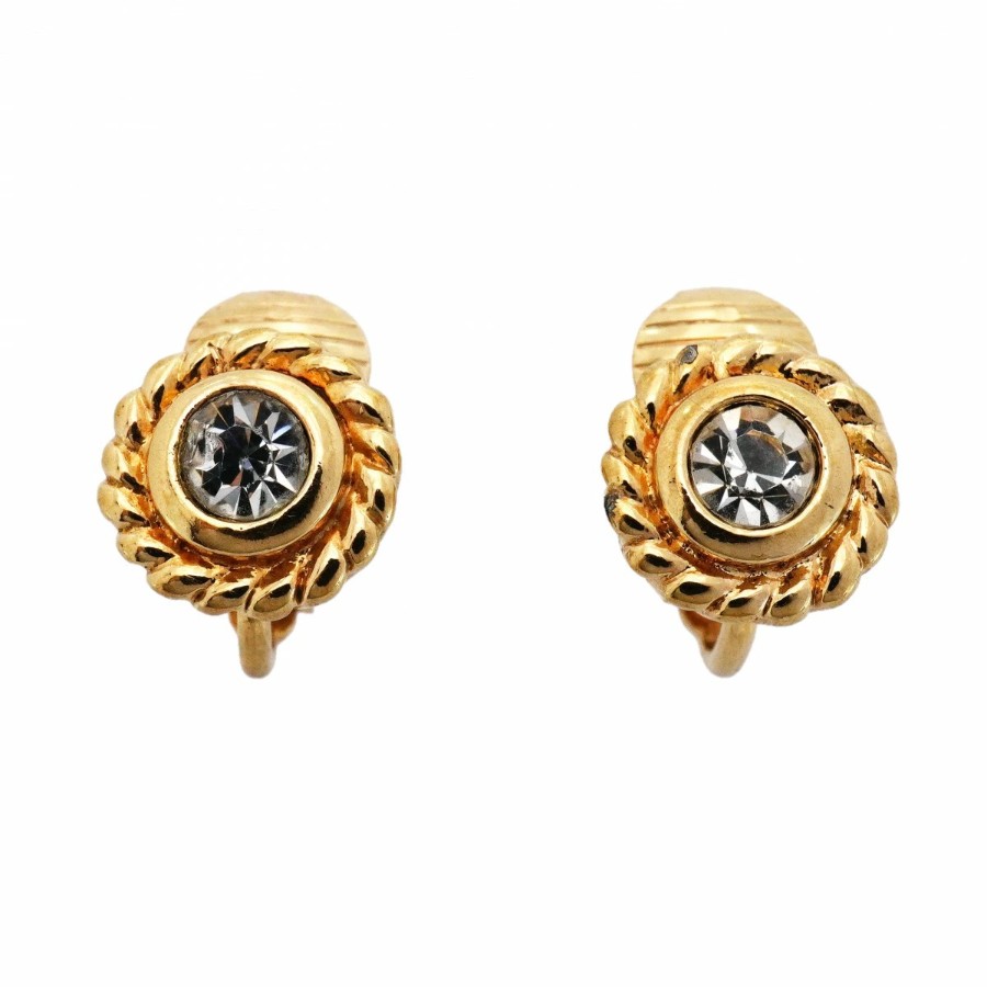 【6jdb0057-k】クリスチャンディオール イヤリング GPメッキ ラインストーン ゴールド【中古】レディース