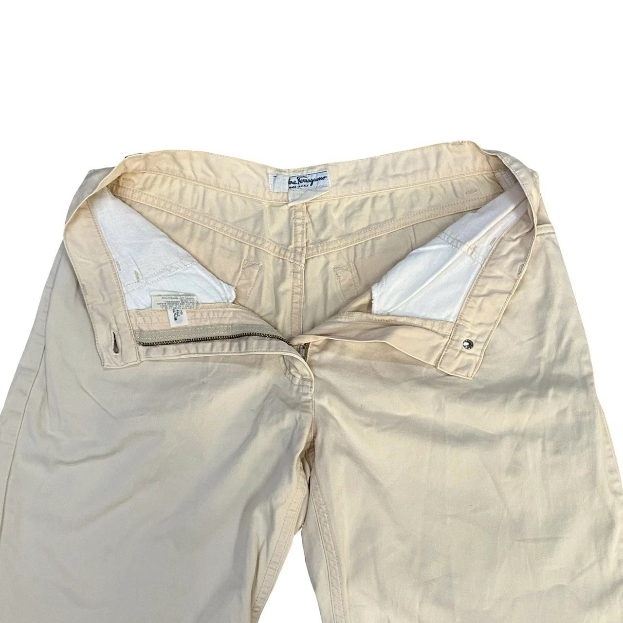 Earn double points! Excellent condition Salvatore Ferragamo Gancini cotton pants, size 44, women's, ivory, 132-2 [pre-owned]