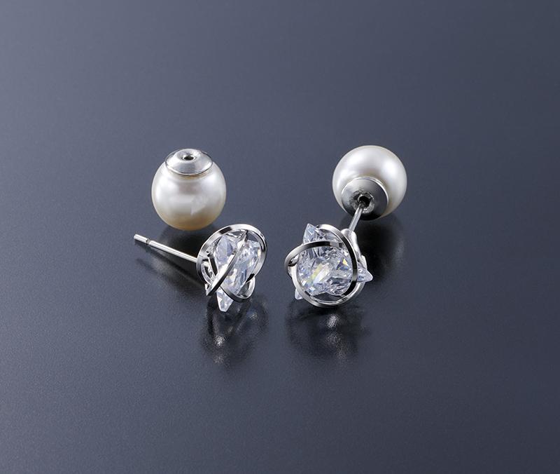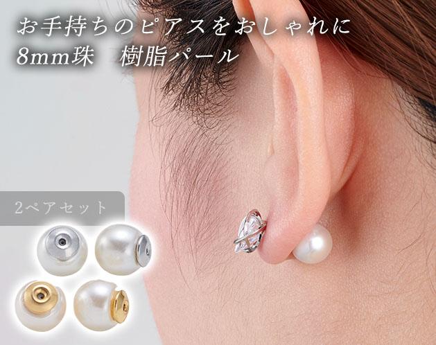 ★お手持ちのピアスのキャッチを交換するだけで後ろ姿も美しいパール調のキャッチ。*8mm珠の樹脂パール、シンプルな大きさが美しく耳元を引き立てます。