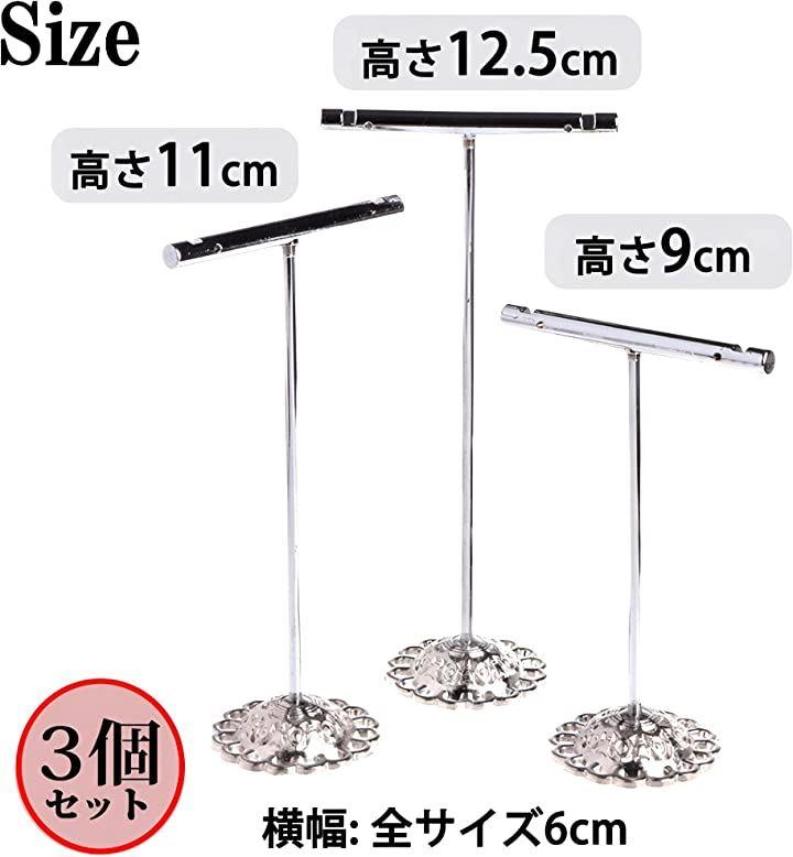 高さの異なる3タイプのスタンドがセットになっていますので、並べれば狭い場所に多くのジュエリーをディスプレイできます。