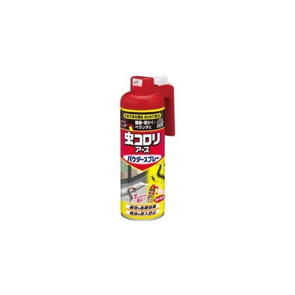 ドライパウダータイプのスプレーだから、壁面や窓枠などに使えて、嫌な害虫のはい上がりを防ぎ、家屋内への侵入防止効果を発揮します。撥水パウダーで雨に強く、効きめは長持ち約1ヵ月間です。 虫コロリアース(粉剤)と併用するとより効果的です。効果持続期間::約1ヵ月(使用環境により異なります。) 「屋外専用」■対象害虫ムカデ、ヤスデ、ゲジゲジ、ケムシ、ダンゴムシ、ワラジムシ、クロアリ、アカアリ、アカカミアリ、アルゼンチンアリ、ヒアリ、シロアリ、アリガタバチ、クモ、カメムシ、シバンムシ■使用方法使用する前によく振ってください。「害虫の侵入を防止する場合」・不快害虫が侵入しやすい場所に帯状に噴射する。・使用の目安:1mあたり4~5秒(約20cm離して噴射すると、より効果的な塗布幅になります。)・1本で30m程度処理できます。「害虫を殺虫する場合」・適量を害虫に直接噴射する。※スプレーした場所に、白いパウダーが真白に付着します。白いパウダーは徐々に薄くなり約1ヵ月後には消えます。「使用場所」・家屋の基礎部分、壁面、窓枠、玄関や勝手口の下など不快害虫が侵入しやすい場所・ガーデニングをしているベランダや庭に面した窓周り■成分シフルトリン(ピレスロイド系)■使用上の注意「使用に際しての注意」」・使用前に必ず製品表示を読み、十分理解した上で使用してください。・定められた使用方法を守ってください。・屋内で使用しないでください。・皮膚、飲食物、食器、子供のおもちゃ、観賞魚・小鳥などのペット類、飼料、植物にかからないようにしてください。・植物に直接かかると薬害がでる場合があります。・アレルギーやかぶれなどを起こしやすい体質の人、喘息の症状のある人は、薬剤を吸い込んだり、触れたりしないでください。・壁や塀に使用する場合、まれに変色、シミになるおそれがあるので、試し噴射して確認してから使用してください。「使用中又は使用後の注意」・人体に向かって噴射しないでください。また、噴射気体を吸入しないでください。・噴射中は喫煙、飲食等はしないでください。・薬剤が皮膚についた場合は、石けんを用いてよく洗ってください。また、目に入った場合は、直ちに水でよく洗い流してください。 ・万一、身体に異常が起きた場合は、直ちに本品がピレスロイド系の殺虫剤であることを医師に告げて診療を受けてください。・家具、建具、大理石や御影石等の石材や自動車などの塗装面に薬剤がかからないようにしてください。■保管及び取扱い上の注意・直射日光や火気を避け、子供の手の届かない涼しいところに保管してください。・缶のサビを防ぐため、水周りや湿気の多い場所には置かないでください。 ■廃棄上の注意・本品は使い切ってから捨ててください。・捨てるときは、風通しが良く、火気のない屋外で、風下に向かって人にかからないように噴射ボタンを押し、噴射音が消えるまでガスを抜いて、各自治体の定める方法に従って廃棄してください。その際、噴射ボタンを押したまま、スプレー側面の孔につまようじ等を差し込むと、噴射ボタンがロックされて最後までガスを抜くことができます。・大量に使い残した缶の廃棄方法はお手数ですがアース製薬お客様窓口にお問い合わせください。■火気と高温に注意高圧ガスを使用した可燃性の製品であり、危険なため、下記の注意を守ること。(1) 炎や火気の近くで使用しないこと。(2) 火気を使用している室内で大量に使用しないこと。(3) 高温にすると破裂の危険があるため、直射日光の当たる所やストーブ、ファンヒーターの近くなど温度が40度以上となる所に置かないこと。(4) 火の中に入れないこと。(5) 使い切って捨てること。高圧ガス:LPガス※火気厳禁【原産国】 日本【問い合わせ先】会社名:アース製薬株式会社「お客様窓口」電話:0120-81-6456受付時間:9:00~17:00(土、日、祝日を除く)【販売元】会社名:アース製薬株式会社住所:〒101-0048 東京都千代田区神田司町2-12-1【商品区分】「日用品」