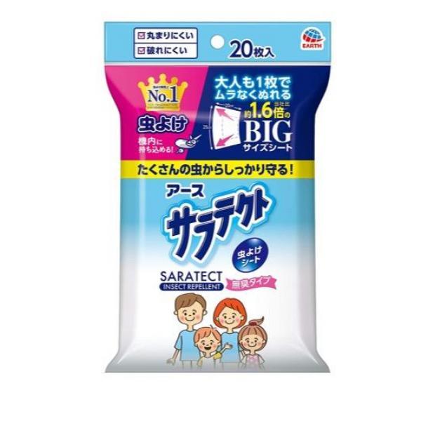 製品の特徴●たくさんの虫からしっかり守る、家族みんなで使える虫よけシート。●シートタイプなのでお出かけや海外旅行等、持ち運びに便利。●飛行機の機内に持ち込める。●大人も1枚でムラなくぬれる、アース製薬比約1.6倍のBIGサイズシート採用(25cm×20cm)●丸まりにくく、破れにくい。●低刺激。お肌にやさしいウォーターイン&4種のうるおい成分(ヒアルロン酸Na、コラーゲン、セラミド、ビタミンC)配合。●皮膚アレルギーテスト済み(全ての方にアレルギーが起きないというわけではありません。)