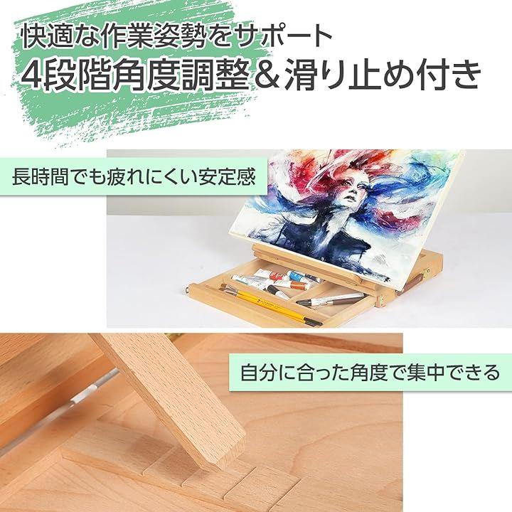 「高品質ブナ材で作られた耐久性抜群の木製イーゼル」卓上イーゼルは高品質の熟成ブナ材を使用し手磨きで仕上げられた滑らかな表面と質感を持っています。