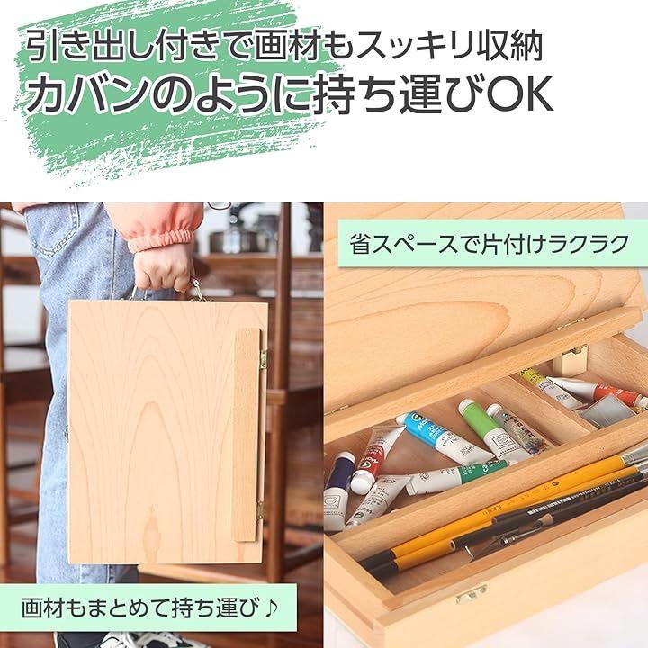 「大容量引き出し付きで画材収納もできるスケッチ板」折りたたみ式イーゼルは大容量の引き出しを備えており、筆や絵の具、ペインティングナイフ、鉛筆などの画材を整理して収納できます。
