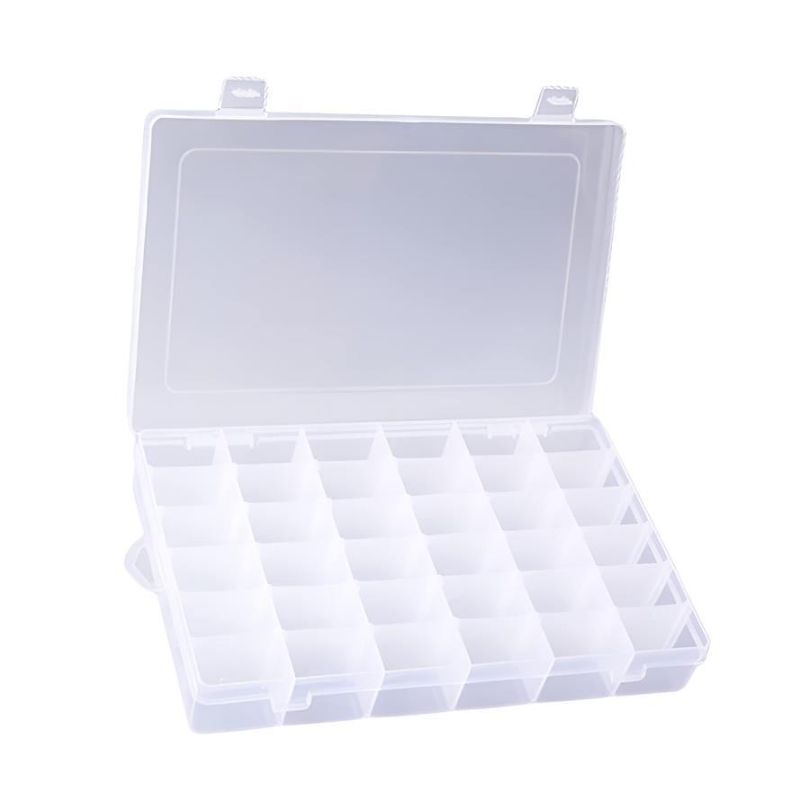 【自由に組み合わせ】横の仕切りは取り外し可能。6~36分割までお好きな大きさに調節ができます。大きさが違う物でも調節でき綺麗に収納できます。 【中身が一目でわかる】透明なケースなので収納した物が一目でわかります。アクセサリーやコスメ、ハンドメイドのパーツ、釣具小物など使い方は無限大。 【フック付き】置く収納、掛ける収納どちらもできるのでお好みに合わせてご使用できます。 【仕様】サイズ:27×17×4cm 各収納部4.3x2.2x4cm 素材:ハードプラスチック 【安心の30日間保証】商品品質には万全を機しておりますが、万が一初期不良等発生した場合はご購入から30日間に限り新しい商品と交換対応いたします。【East Leafオリジナル】East Leafオリジナル梱包にて倉庫から迅速にお届けいたします。