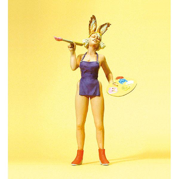 イースター(復活祭)を祝う、筆とパレットを持ったバニーガールの人形です。