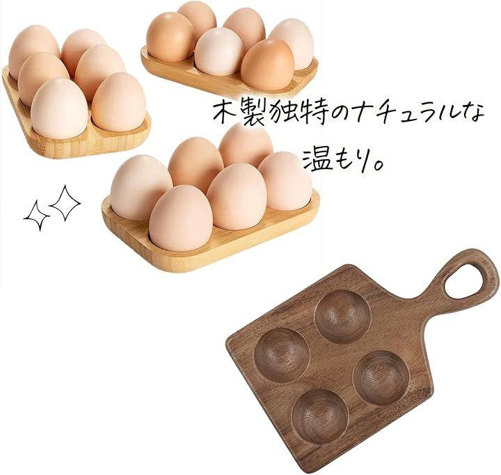 4パターンの形状が選べる木製卵ホルダーは、卵収納トレイとしてキッチン用品のアクセントになります。