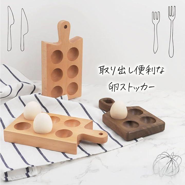 4パターンの形状が選べる木製卵ホルダーは、卵収納トレイとしてキッチン用品のアクセントになります。