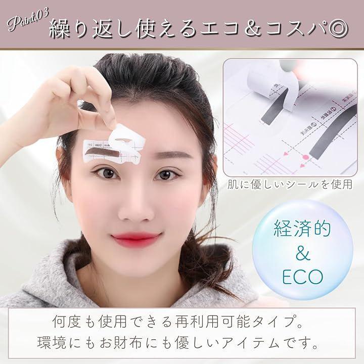 本商品はシールタイプの眉毛テンプレートで、正確かつ美しい眉を誰でも簡単に描くことができます。