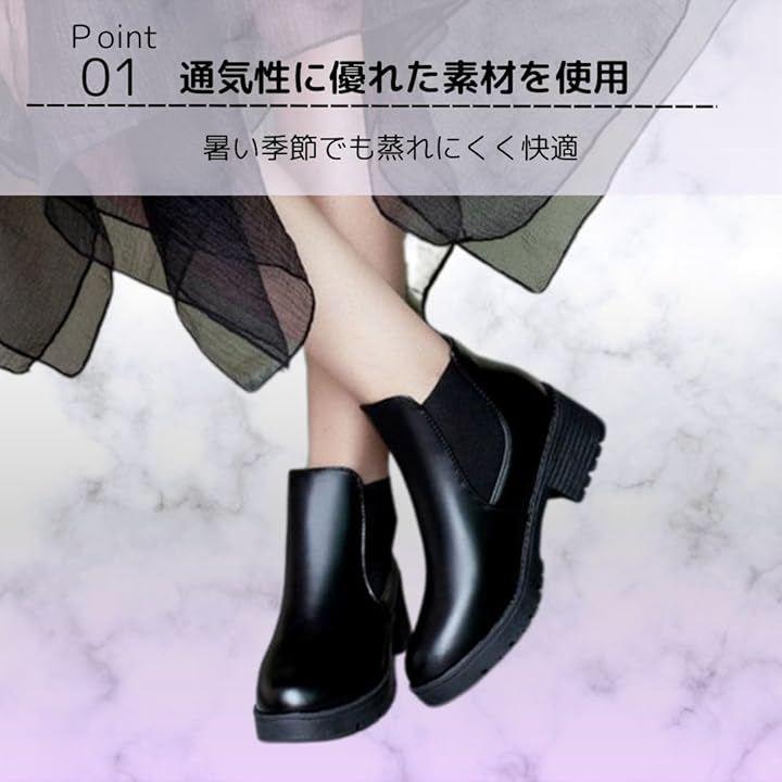 「デザインの特徴」 シンプルで洗練されたサイドゴアのハーフブーツは、スタイリッシュなデザインでスタイリッシュなシルエットで美しい脚のラインを演出します。