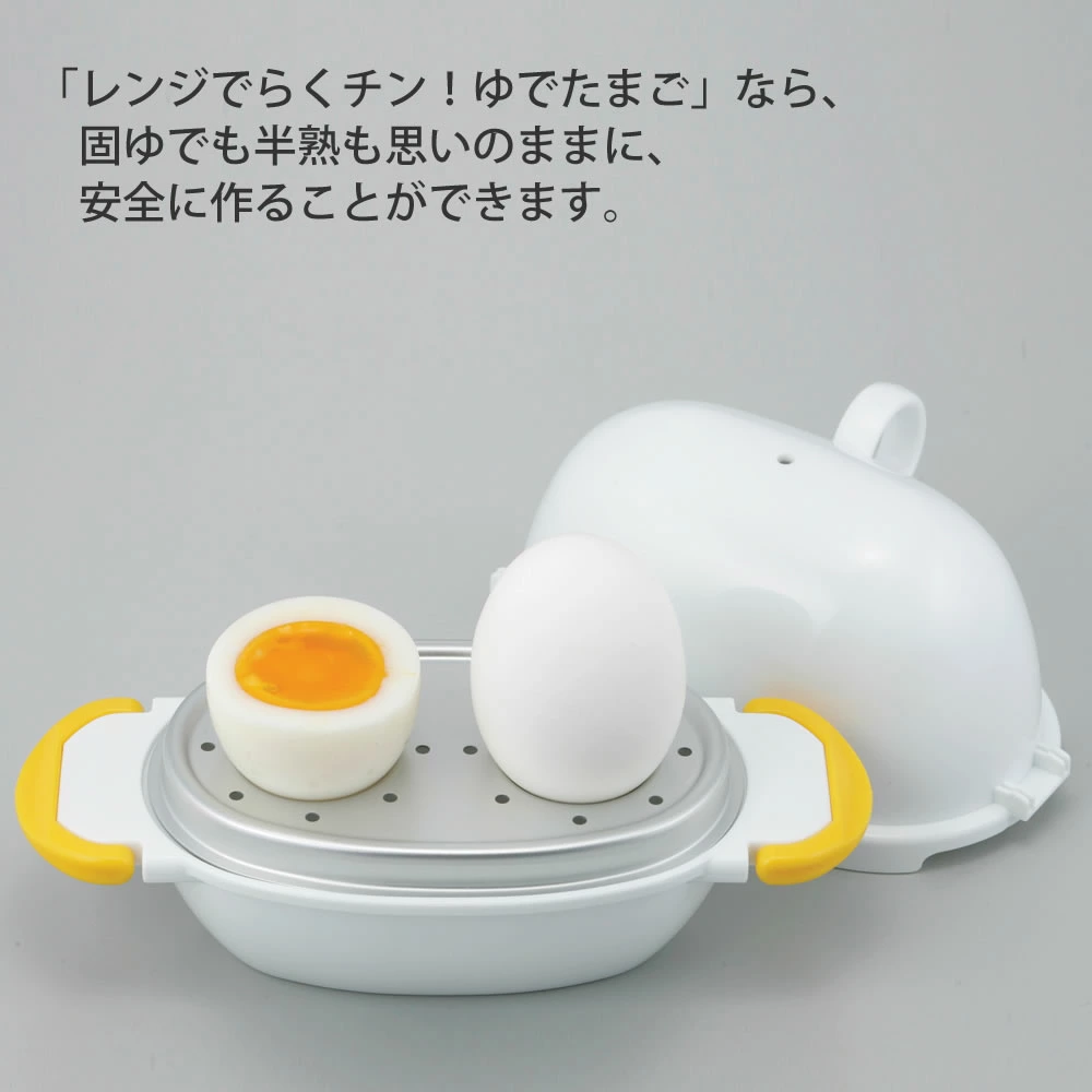 「レンジでらくチン!ゆでたまご」なら、固ゆでも半熟も思いのままに、安全に作ることができます。
