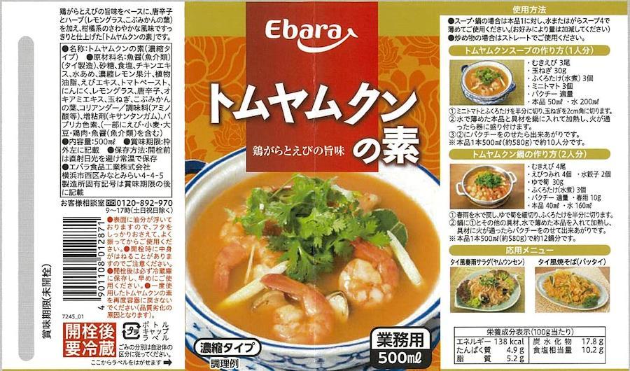 水またはがらスープで希釈した本品と食材を煮込むだけで手軽にトムヤムクンが作れるスープの素です。鶏がらとえびの旨味をベースに、唐辛子とハーブ(レモングラス、こぶみかんの葉)を加え、柑橘系のさわやかな風味ですっきりと仕上げました。小鍋やスープはもちろん、春雨やフォー、中華麺を入れてトムヤムラーメンもお作り頂けます。