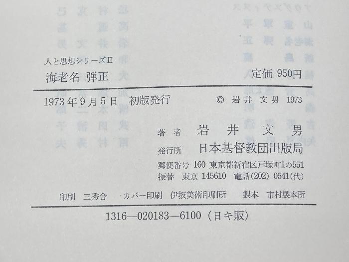 商品名:海老名弾正 (1973年) (人と思想シリーズ〈第2期〉) 日本基督教団出版局 岩井 文男