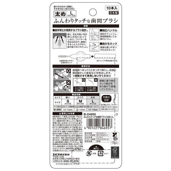 【使用方法】・歯間部へゆっくりとまっすぐ挿入し、前後に数回動かして歯垢などを除去します。※回転させて使用しないでください。※奥歯に使う時は、ネック部分を折り曲げて使用してください。※交換の目安:毛が傷んだり、ワイヤーが曲がりやすくなったら取り替えてください。