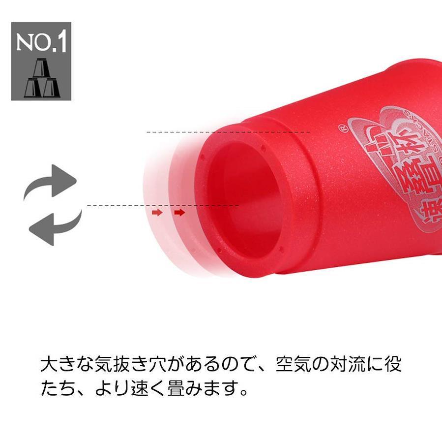 【商品内容】 スタッキングカップ×1セット(12個) 【商品仕様】 カップサイズ:φ6.3×7.7cm 総重量:175g 材質:プラスチック カラー:レッド/ブルー/イエロー/グリーン/オレンジ/パープル 対象年齢:6歳以上 【ご購入時のご注意】 レッド/ブルー/イエロー/グリーン/オレンジ/パープル、全6色あります。 色をご指定いただけませんので、ランダムに発送いたします。予めご了承ください。 レッド/ブルー/イエロー/グリーン/オレンジ/パープル、全6色あります。色をご指定いただけませんので、ランダムに発送いたします。予めご了承ください。 環境にやさしいプラスチックで、子供でも安全で長時間練習できます。外側はつや消しで、手滑りにくく、厚めになったカップ口で、嵌めやすいです。また、大きな気抜き穴があるので、空気の対流に役たち、より速く畳みます。 プロシリーズに比べて安定感があり、初心者に適しています。スタックは手や反応をトレーニングの他、思考力や判断能力等も磨きます。練習は簡単なレベルから挑戦しましょう。 カップサイズ:φ6.3×7.7cm、総重量:175g、材質:プラスチック、カラー:レッド/ブルー/イエロー/グリーン/オレンジ/パープル、対象年齢:6歳以上 商品内容:スタッキングカップ×1セット(12個)