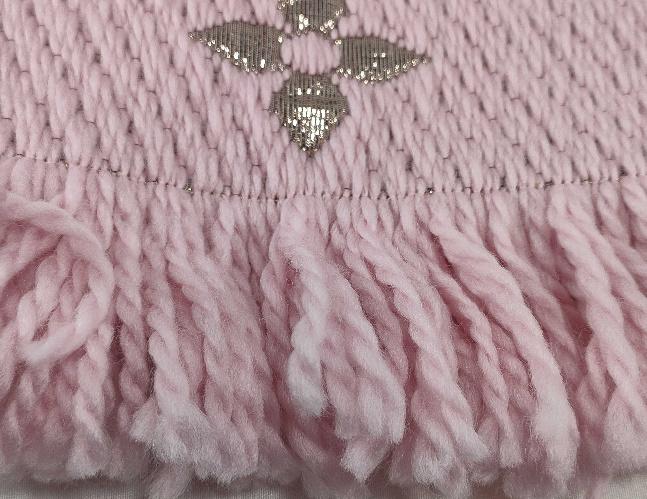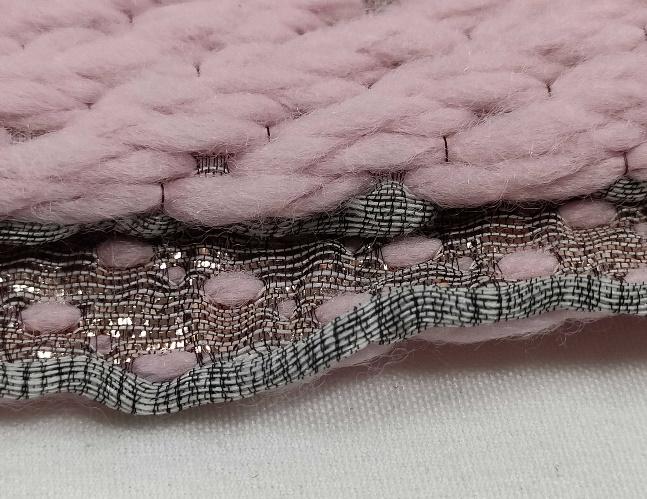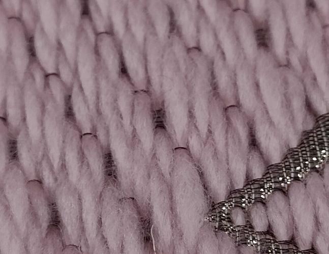 こちらは【95%ウール/3%シルク/2%ポリエステル(メタリック糸)】を使用した高級感のある質感。肌触りが柔らかく、保温性にも優れています。