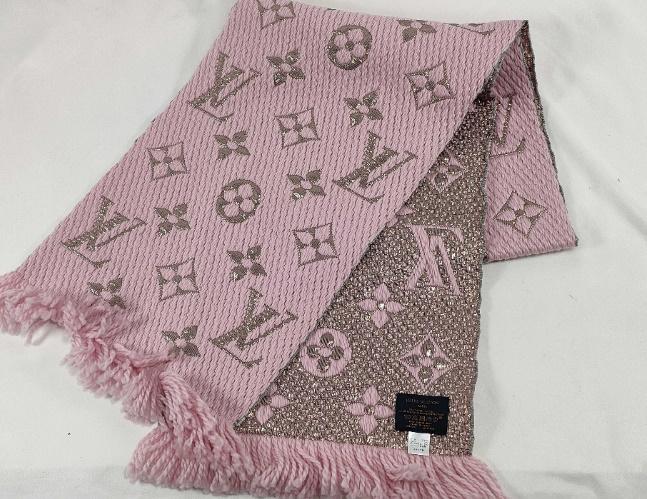 LOUIS VUITTON ルイ・ヴィトンエシャルプ・ロゴマニア シャイン マフラー(ピンク)ウール×シルク×ポリエステルイタリア製 箱付き