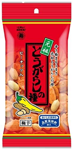 『とうがらしの種ピーナッツ入』は、㈱みながわ製菓より商品ブランドを引き継いだ商品です。原料米は、国産米を100%使用致しました。パリッと歯ざわりよく焼きあげ一味唐辛子を効かせた特製醤油ダレで仕上げた薄焼きせんべいと、おいしさにこだわったピーナッツをバランスよくミックスしました。一味唐辛子のすっきりとした辛さと香ばしいピーナッツがくせになる、おつまみに最適な一品です。食べきりサイズのスリムパックで持ち運びにも便利です。