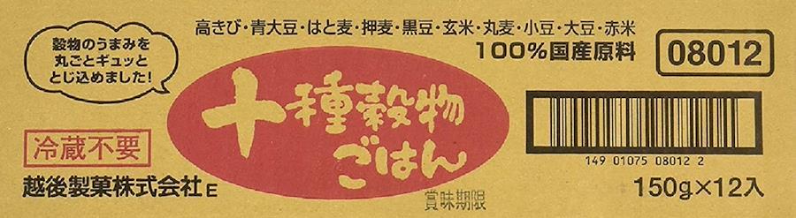 内容量:150g×12個カロリー:150g当たり 219kcal原材料:玄米、はと麦、丸麦、押麦、高きび、青大豆、黒大豆、大豆(遺伝子組み替えではない)、小豆、赤米商品サイズ(高さ×奥行×幅):95mm×263mm×230mm【重要】メーカーによる商品リニューアルに伴いパッケージ(内容量も含む)変更が行われた場合、新パッケージでお届け致します事ご了承願います。